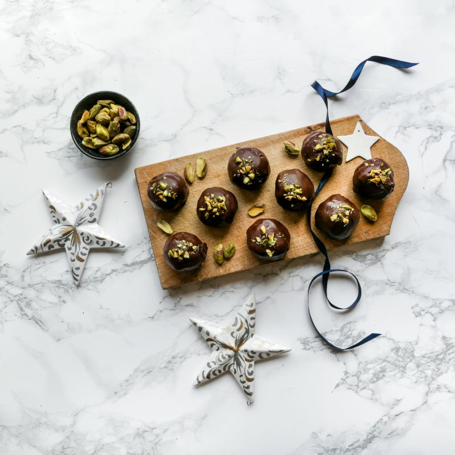 Pynt med hakkede pistaciekerner på toppen.